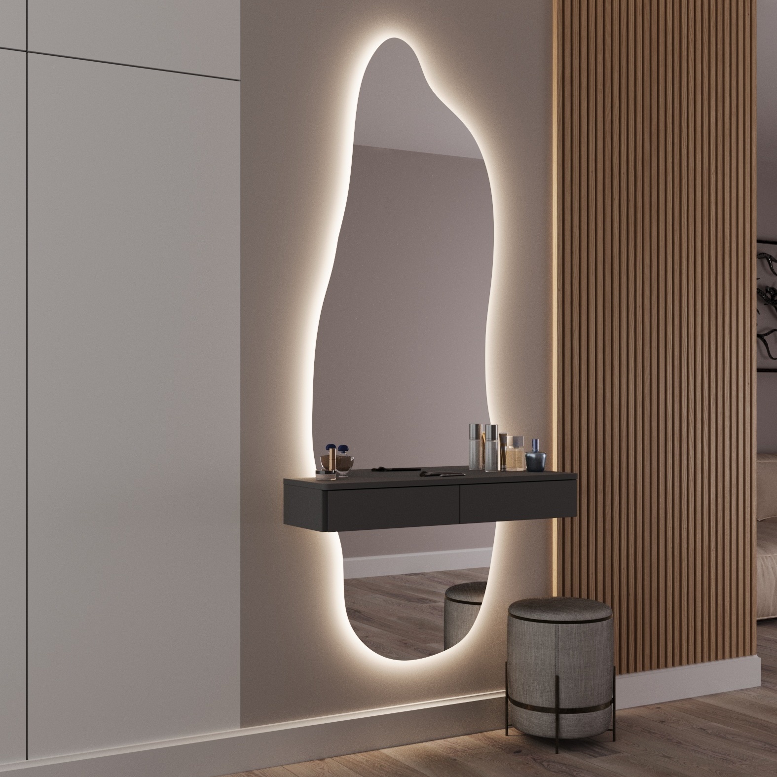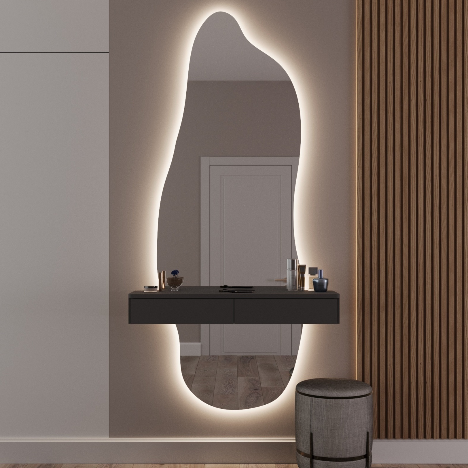 Фигурное настенное зеркало Mira — это гармония эстетики, технологий и продуманного функционала в одном решении. Оно станет выразительным акцентом в интерьере спальни, гостиной или прихожей.