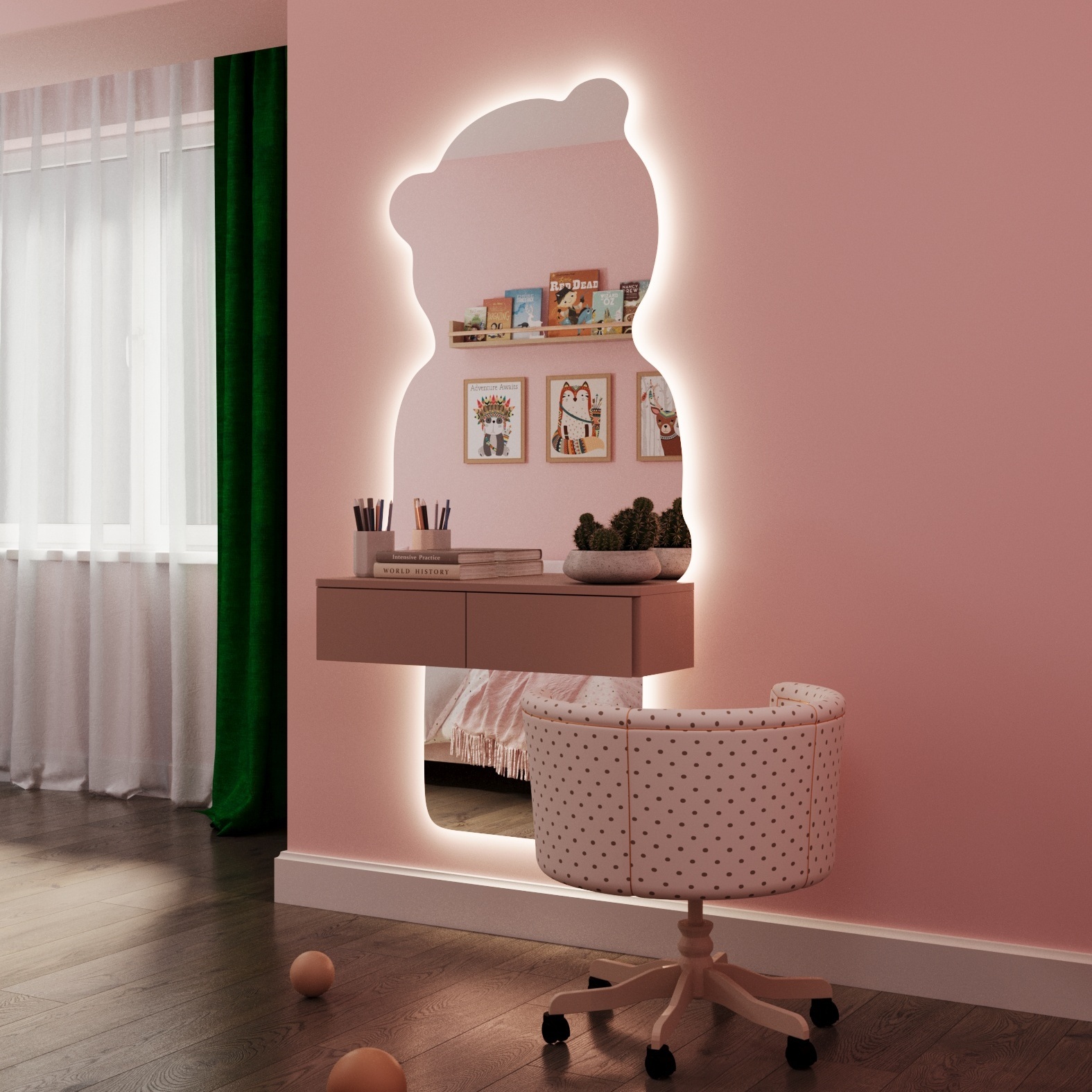 Фигурное настенное зеркало Umka в форме медвежонка — это гармония эстетики, технологий и продуманного функционала в одном решении. Оно станет выразительным акцентом в интерьере детской спальни.