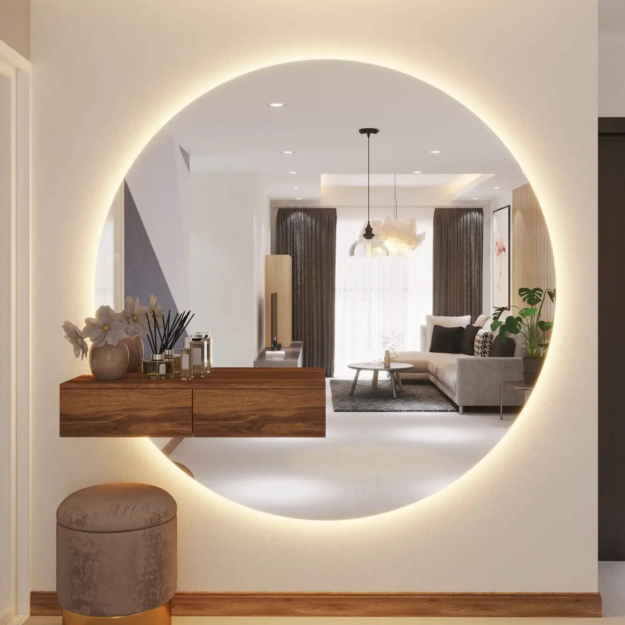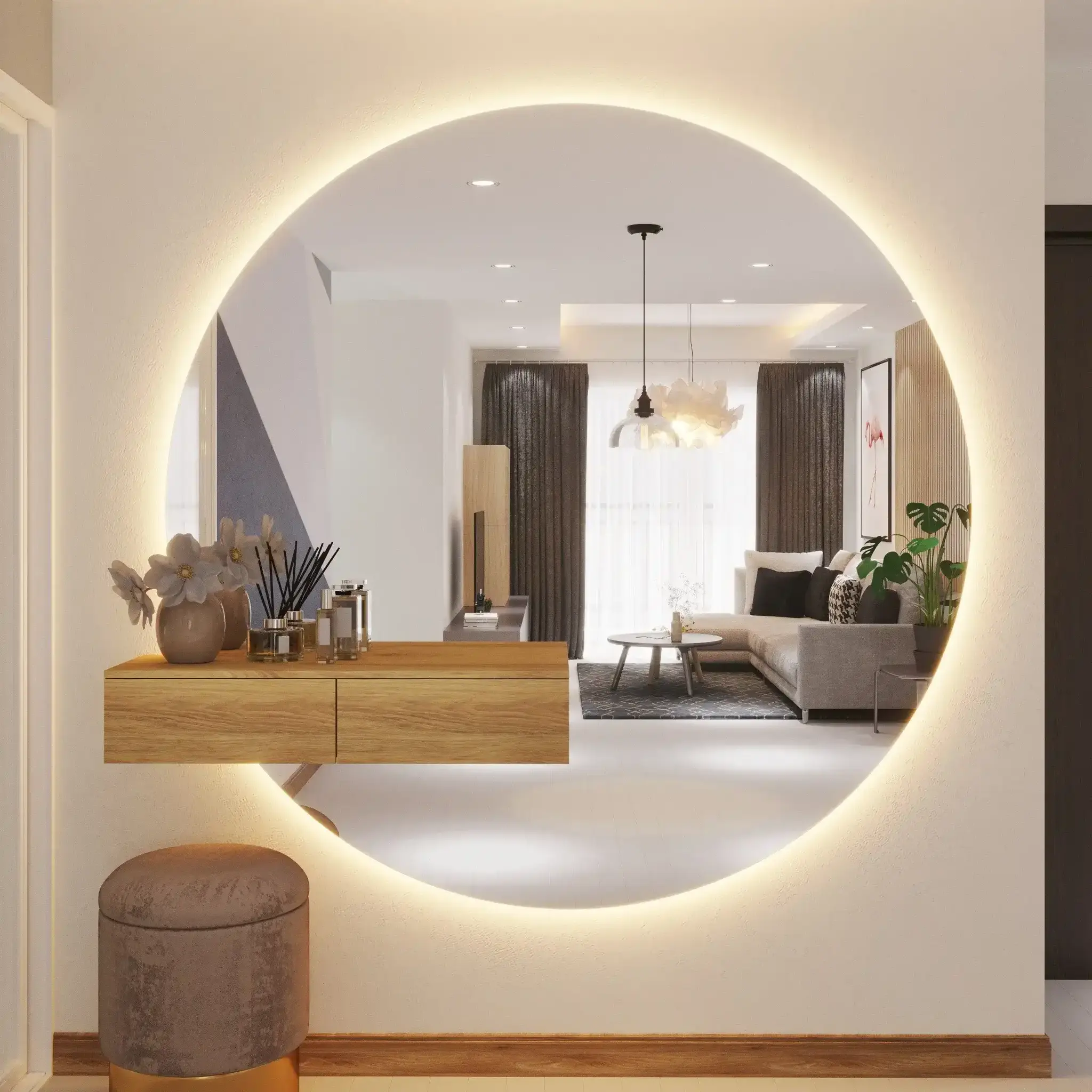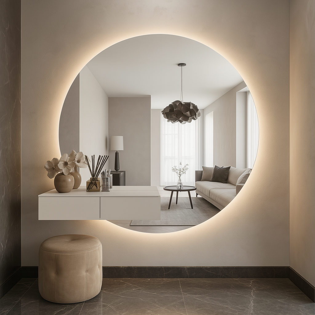 Круглое настенное зеркало Aero — это гармония эстетики, технологий и продуманного функционала в одном решении. Оно станет выразительным акцентом в интерьере спальни, гостиной или прихожей.