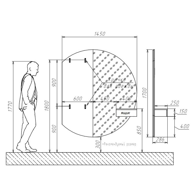 Дополнительно предусмотрена декоративная панель с крючками для одежды — удобный элемент для размещения повседневных вещей и аксессуаров.