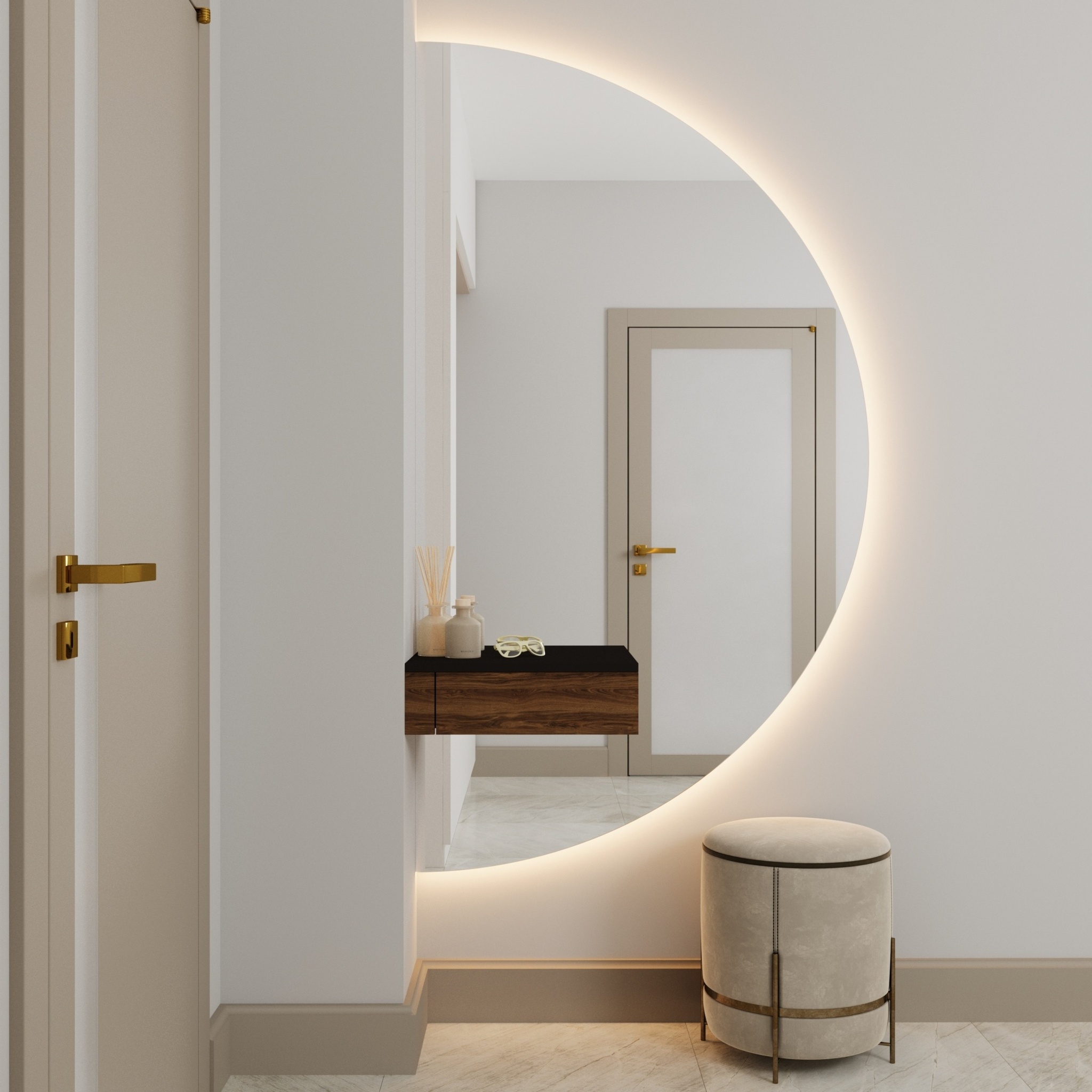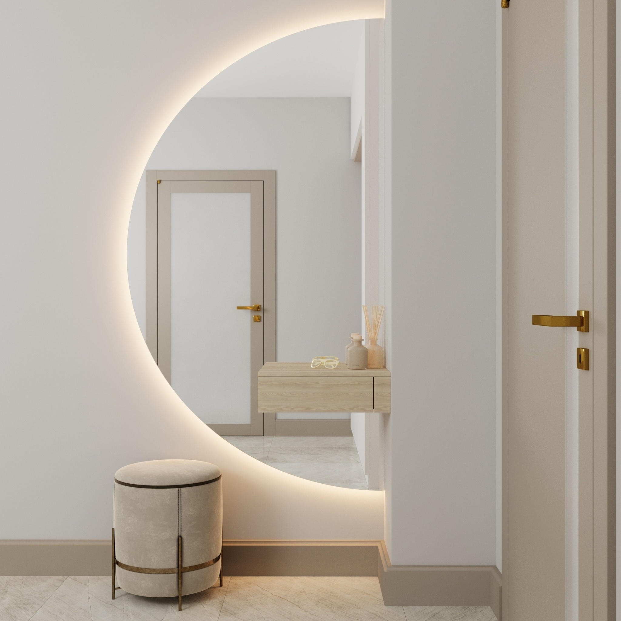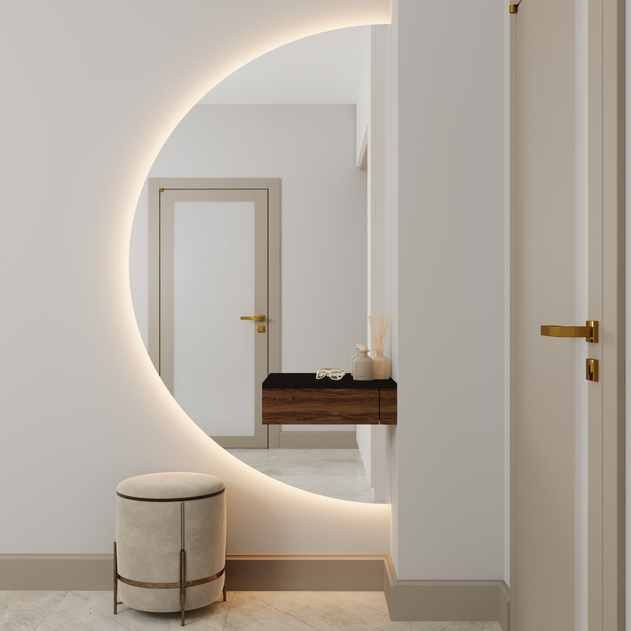 Полукруглое настенное зеркало Ruan — это гармония эстетики, технологий и продуманного функционала в одном решении. Оно станет выразительным акцентом в интерьере спальни, гостиной или прихожей.