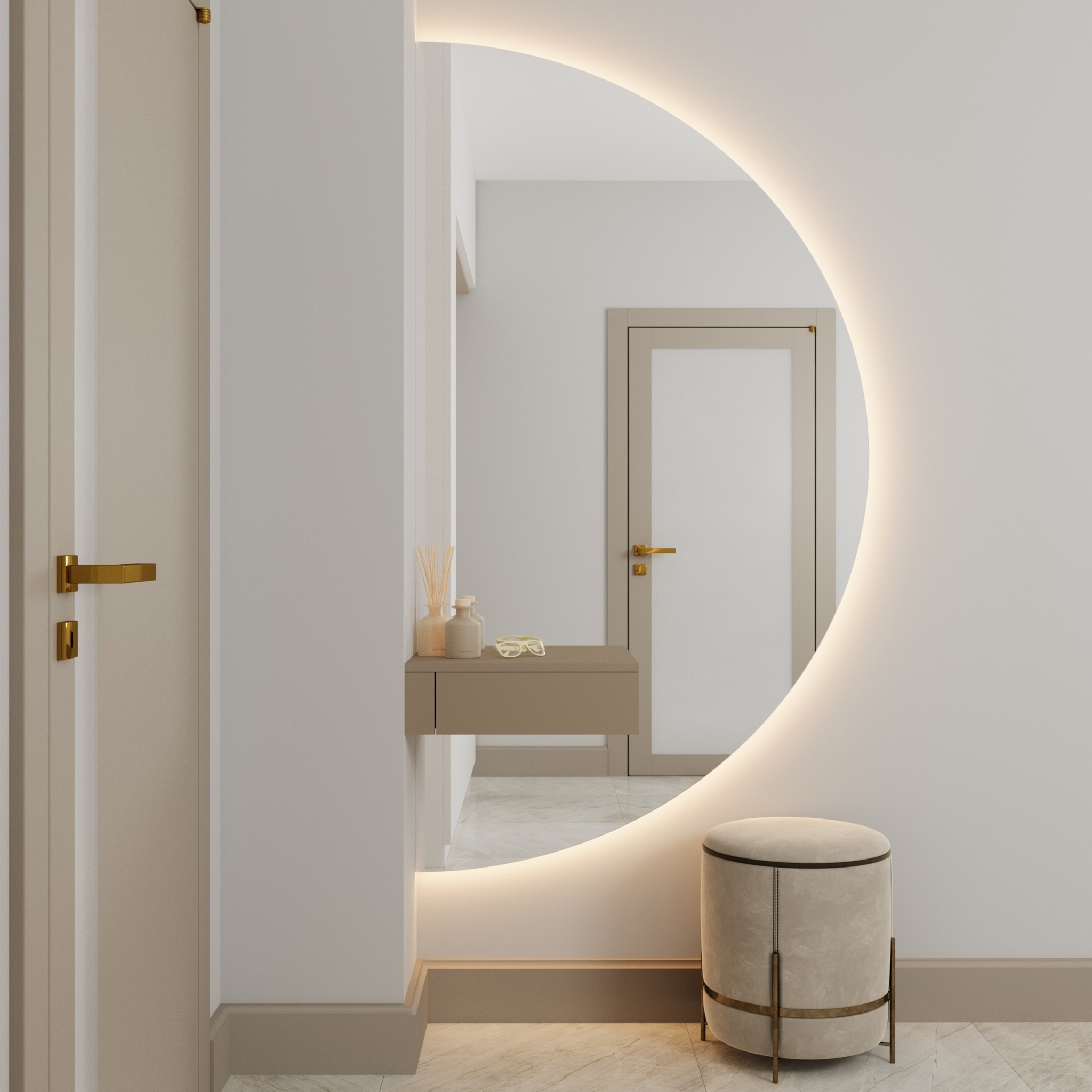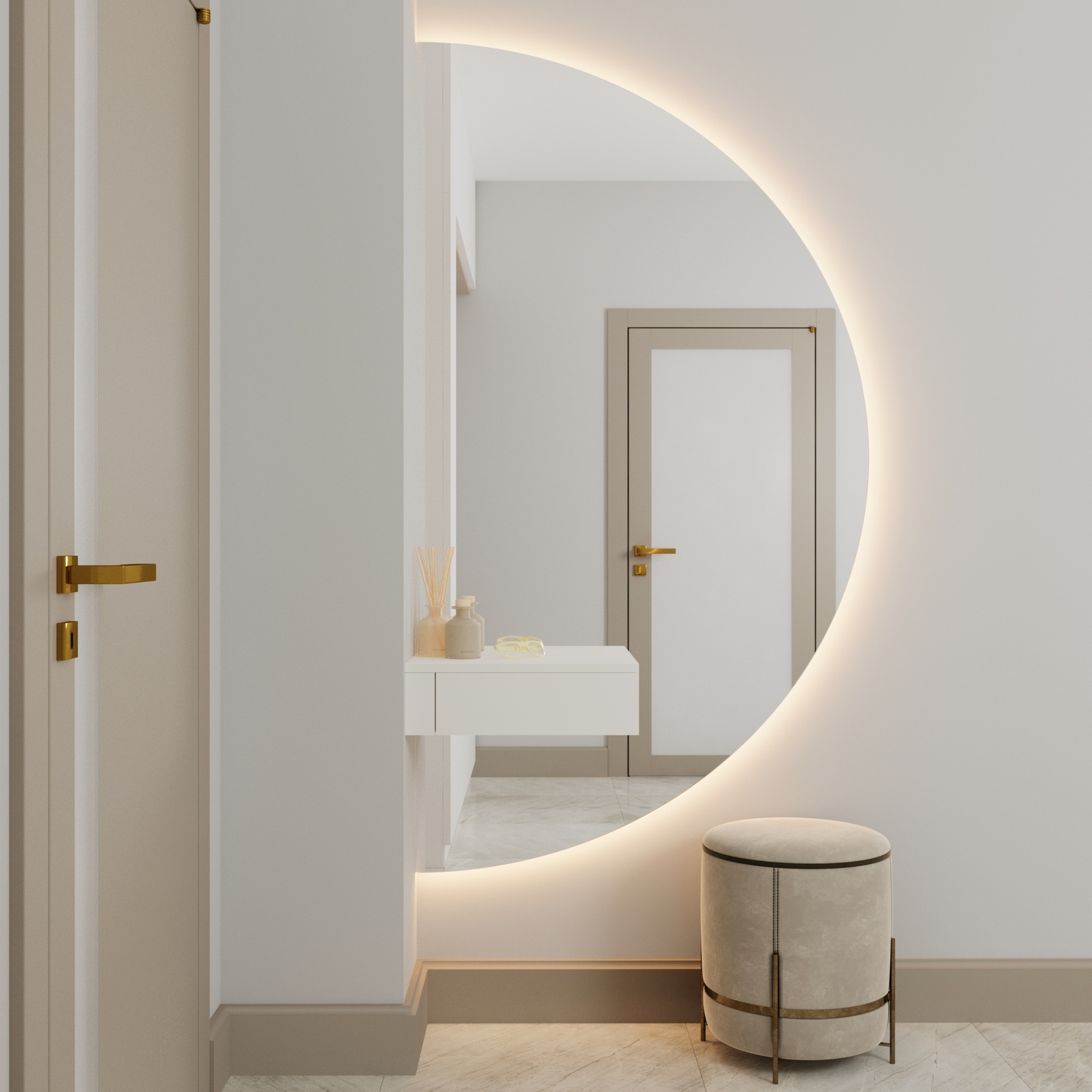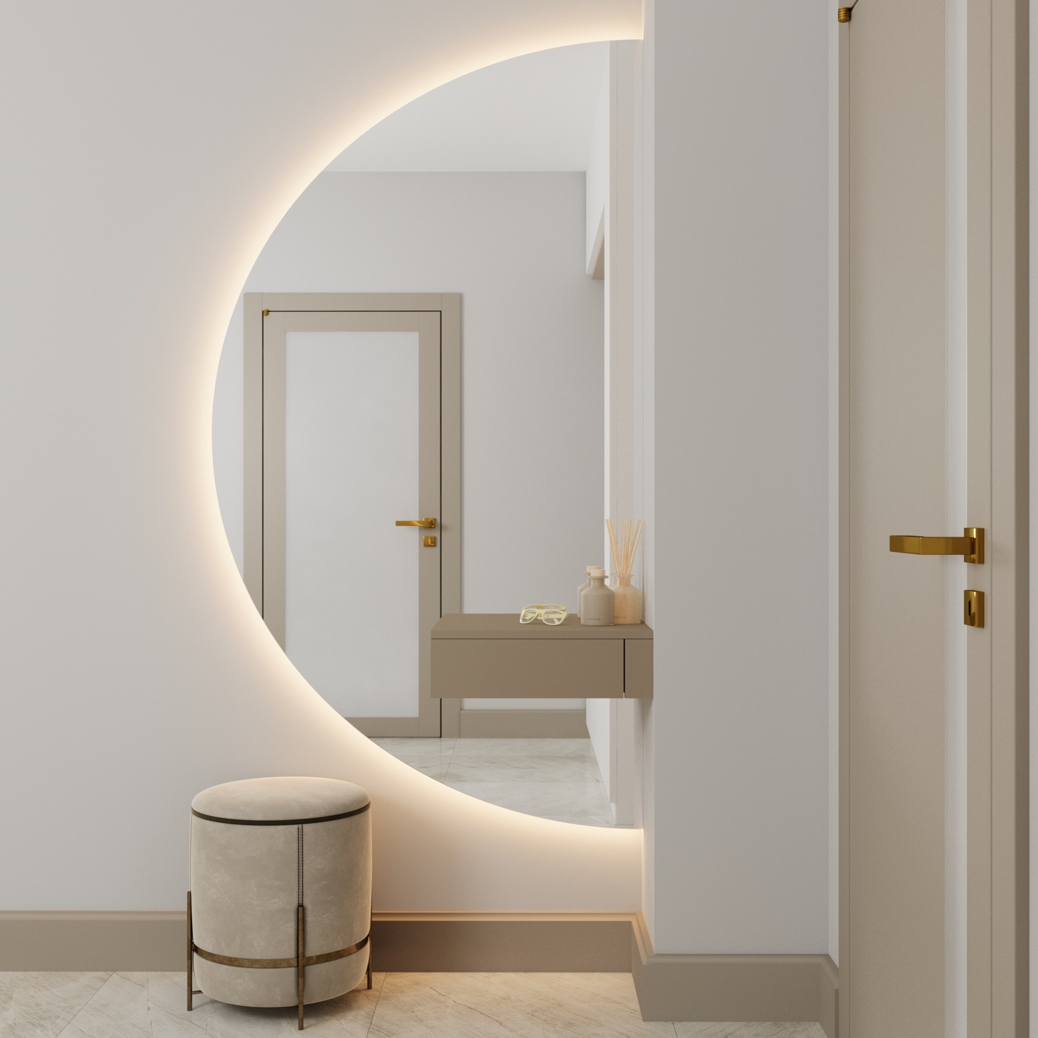 Полукруглое настенное зеркало Ruan — это гармония эстетики, технологий и продуманного функционала в одном решении. Оно станет выразительным акцентом в интерьере спальни, гостиной или прихожей.